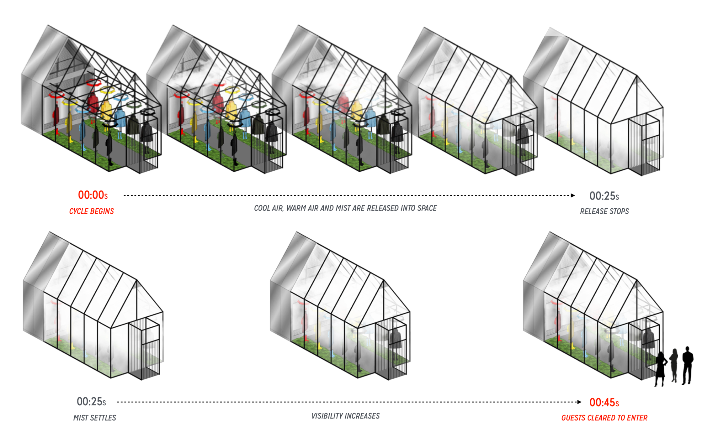 We collaborated with a team of SFX specialists to engineer a microclimate using layered mist and high-pressure air systems within the constraints of a National Historic Landmark.