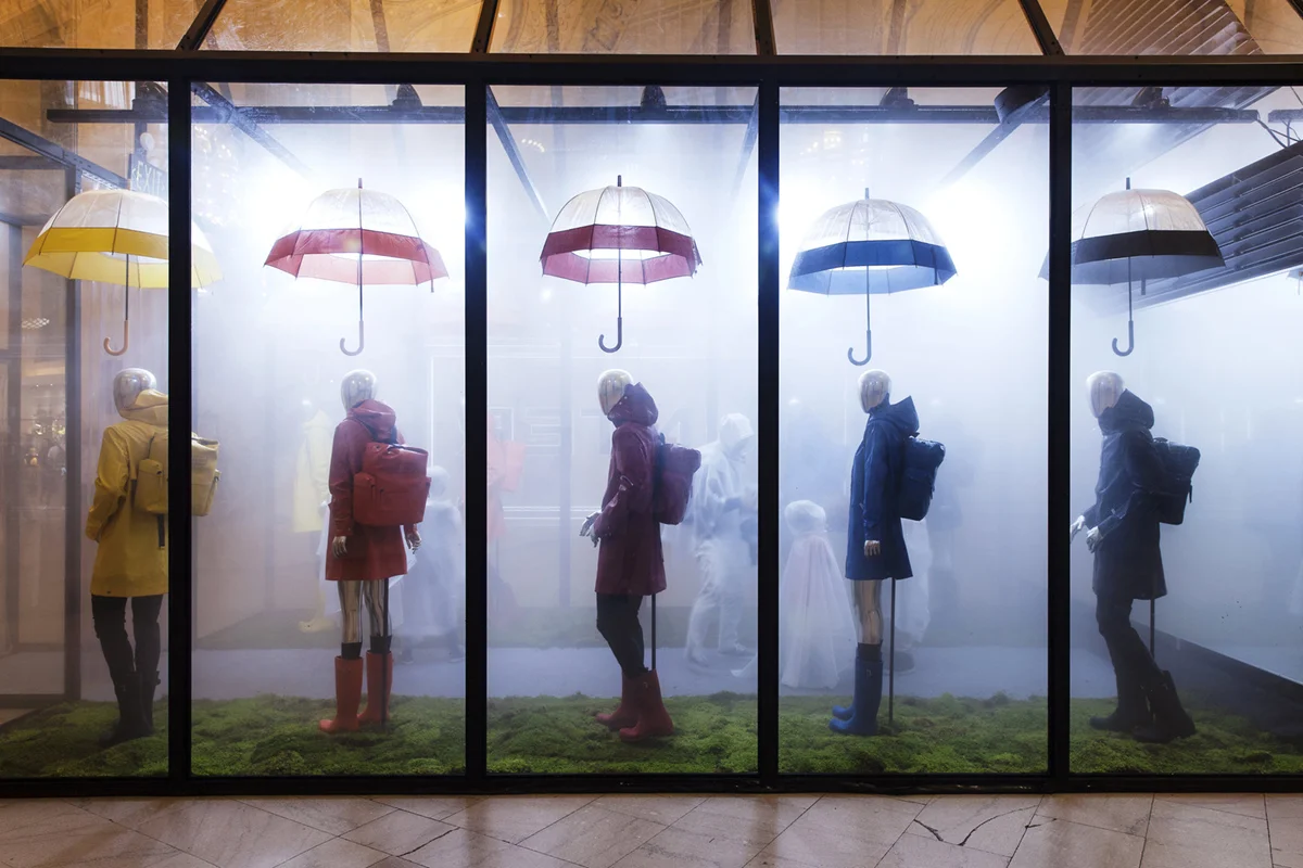 A glass house in the heart of Vanderbilt Hall, recreating the misty atmosphere of the Scottish Highlands where Hunter boots originated. The experience transported visitors from Midtown chaos into a fog-filled sanctuary.